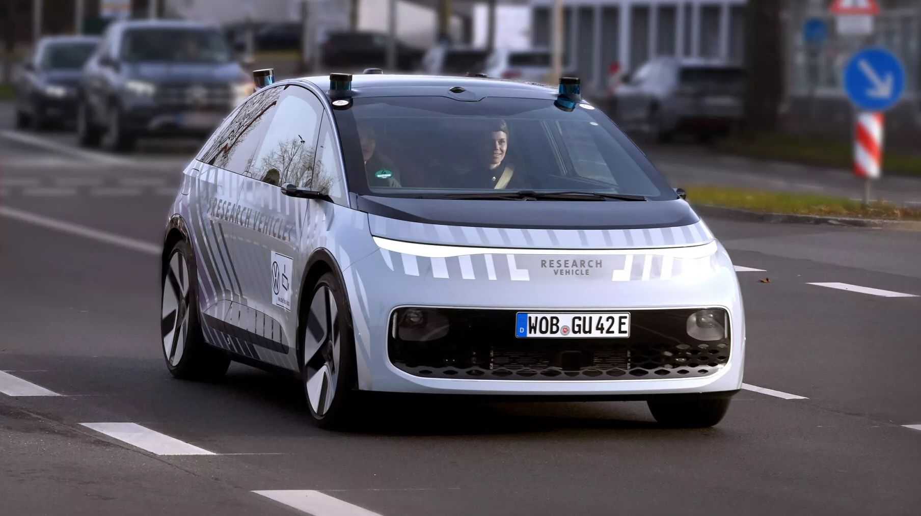 nevű kutatási robottaxit Wolfsburgban, Németországban.Az autó teljesen önvezető, kormány és pedálok nélkül készült, valós városi forgalomban közlekedik (biztonsági operátor joystickkel felügyeli).