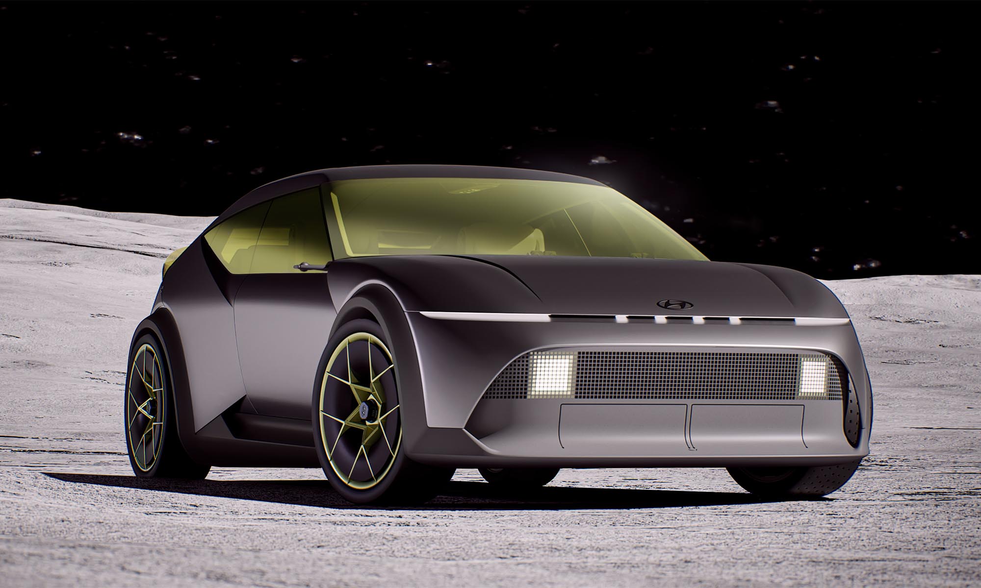 A típus az Inster és az Ioniq 5 közé érkezik majd, formáját tekintve pedig a tavaly bemutatott Concept Three-re (a képen még ez szerepel) emlékeztet majd, bár úgy hallani, annál valamivel magasabb lesz, kisebb kerekeken.